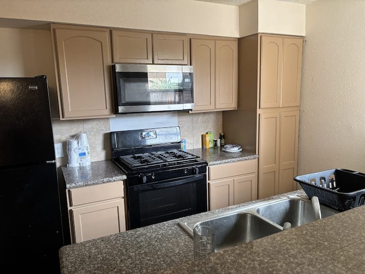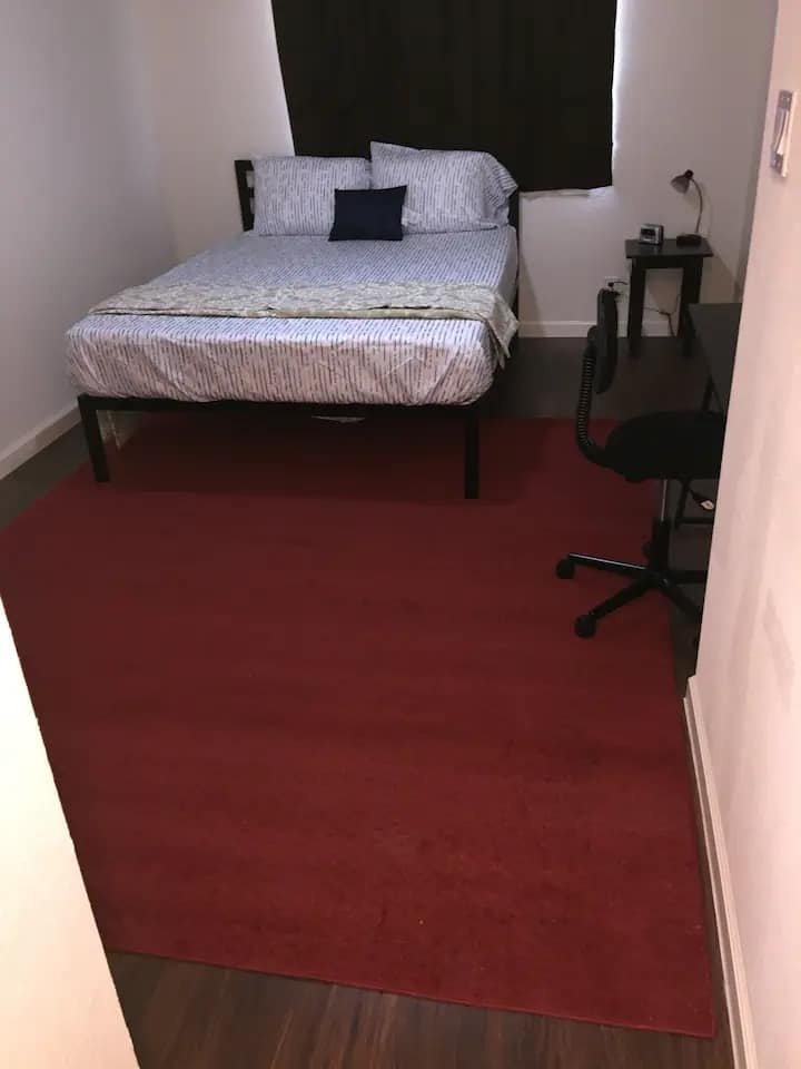While there are many luxury hotels starting t $150 a night around us, The option for budget friendly students and people in their early career trying to establish as hard working citizens are very limited. We set the expectations with a cozy private (including your own private bath), safe, clean and relaxing abode for professionals visiting with a purpose. Free wifi and basic amenities are included and you will have other Airbnb guests sharing the common spaces like the living and the kitchen. We ensure that your participation with other guests in keeping the place clean and tidy ensures low cost accommodation for all. This townhouse has 3 private rooms and can accommodate 3 people. Beds can accommodate one adult only per room. THIS LISTING IS FOR A SINGLE ROOM. THERE COULD BE OTHER GUESTS IN OTHER 2 ROOMS. Carpet bedding and curtains may be different than what is shown in the pictures. Elaborate cooking is not possible, however a microwave, toaster and oven is available. It is a self Check-in and Check-out accommodation. All rooms have attached BATHROOMS AND DOOR LOCKS.