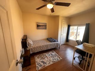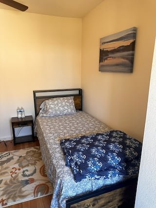 Monthly price for an apartment room with dedicated bathroom. You will be staying in one of the rooms available, so the linens and curtains shown in the picture are subject to change. Room is furnished with a single bed and a study desk/chair. Room size is small, about 10×10 sq. ft. Door has a keypad lock. Wifi is included in the price. Kitchen has a cooktop, microwave and refrigerator. Our low price comes with a absolutely non-refundable policy. We do not accept alterations.