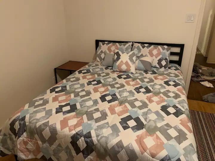 While there are many luxury hotels starting t $150 a night around us, The option for budget friendly students and people in their early career trying to establish as hard working citizens are very limited. We set the expectations with a cozy private (including your own private bath), safe, clean and relaxing abode for professionals visiting with a purpose. Free wifi and basic amenities are included and you will have other Airbnb guests sharing the common spaces like the living and the kitchen. We ensure that your participation with other guests in keeping the place clean and tidy ensures low cost accommodation for all. This townhouse has 3 private rooms and can accommodate 3 people. Beds can accommodate one adult only per room. THIS LISTING IS FOR A SINGLE ROOM. THERE COULD BE OTHER GUESTS IN OTHER 2 ROOMS. Carpet bedding and curtains may be different than what is shown in the pictures. Elaborate cooking is not possible, however a microwave, toaster and oven is available. It is a self Check-in and Check-out accommodation. All rooms have attached BATHROOMS AND DOOR LOCKS.