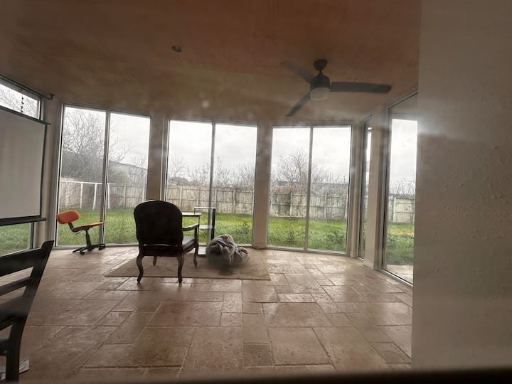 Across from the Mainland bus transit center. Close to Walmart and HEB, Gated community and great price for long term stays. You have your own bathroom. Perfect for a single person to stay. No guests allowed. Free street parking. You are sharing the living room and kitchen with other guests. Wifi is from spectrum. Non-Refundable booking. If new to Airbnb and no reviews – introduce yourself, profession, where are you from and purpose of your visit. Please read below.