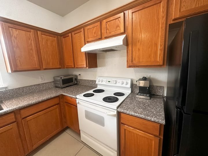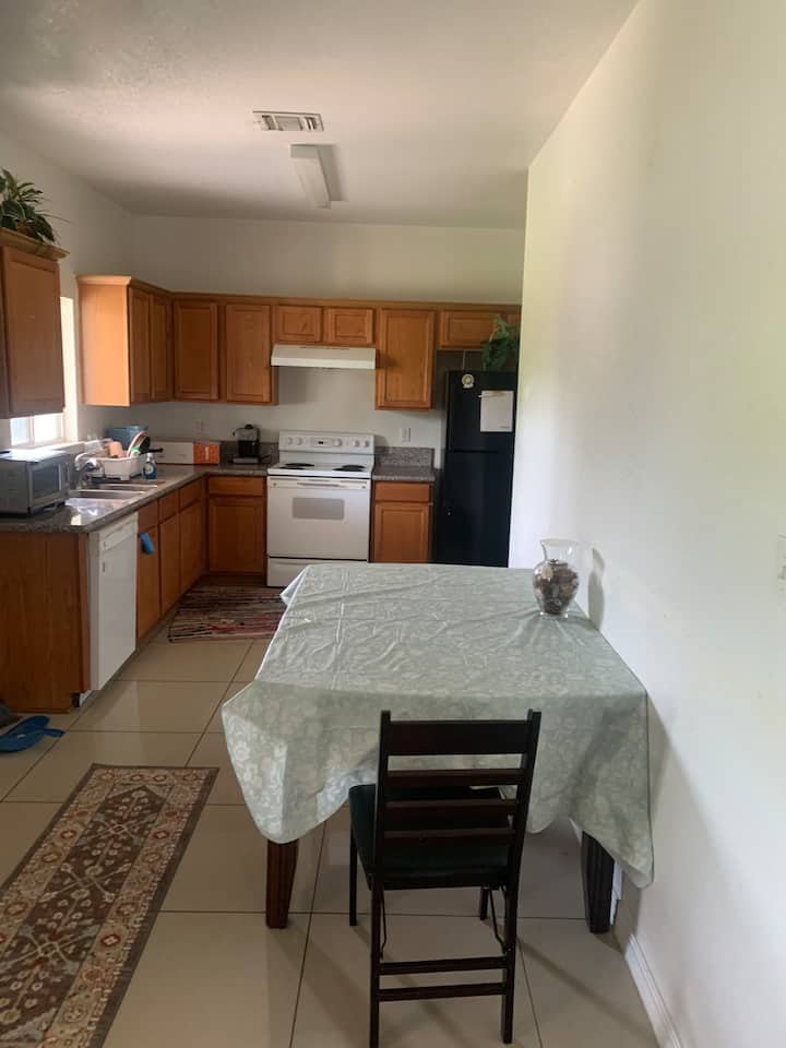 Across from the Mainland bus transit center. Close to Walmart and HEB, Gated community and great price for long term stays. You have your own bathroom. Perfect for a single person to stay. No guests allowed. Free street parking. You are sharing the living room and kitchen with other guests. Wifi is from spectrum. Non-Refundable booking. If new to Airbnb and no reviews – introduce yourself, profession, where are you from and purpose of your visit. Please read below.