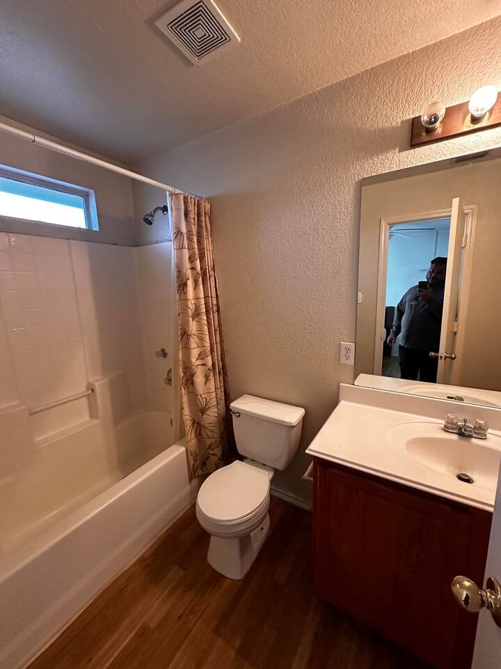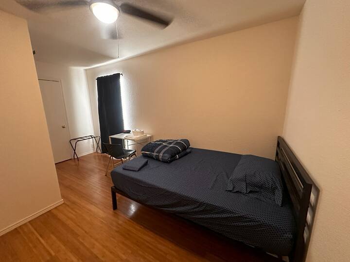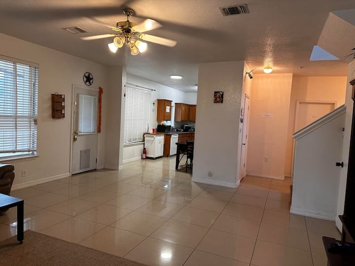 Across from the Mainland bus transit center. Close to Walmart and HEB, Gated community and great price for long term stays. You have your own bathroom. Perfect for a single person to stay. No guests allowed. Free street parking. You are sharing the living room and kitchen with other guests. Wifi is from spectrum. Non-Refundable booking. If new to Airbnb and no reviews – introduce yourself, profession, where are you from and purpose of your visit. Please read below.