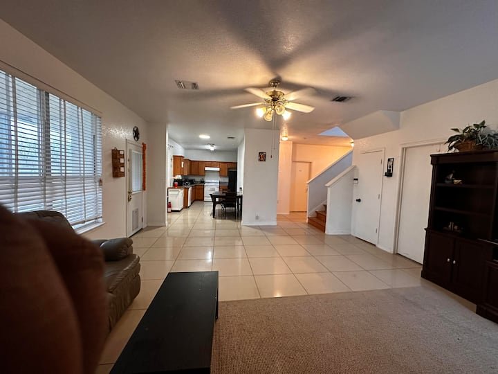 Across from the Mainland bus transit center. Close to Walmart and HEB, Gated community and great price for long term stays. You have your own bathroom. Perfect for a single person to stay. No guests allowed. Free street parking. You are sharing the living room and kitchen with other guests. Wifi is from spectrum. Non-Refundable booking. If new to Airbnb and no reviews – introduce yourself, profession, where are you from and purpose of your visit. Please read below.