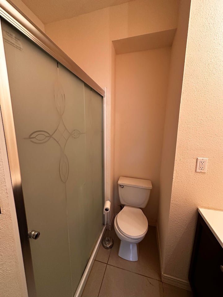 Across from the Mainland bus transit center. Close to Walmart and HEB, Gated community and great price for long term stays. You have your own bathroom. Perfect for a single person to stay. No guests allowed. Free street parking. You are sharing the living room and kitchen with other guests. Wifi is from spectrum. Non-Refundable booking. If new to Airbnb and no reviews – introduce yourself, profession, where are you from and purpose of your visit. Please read below.
