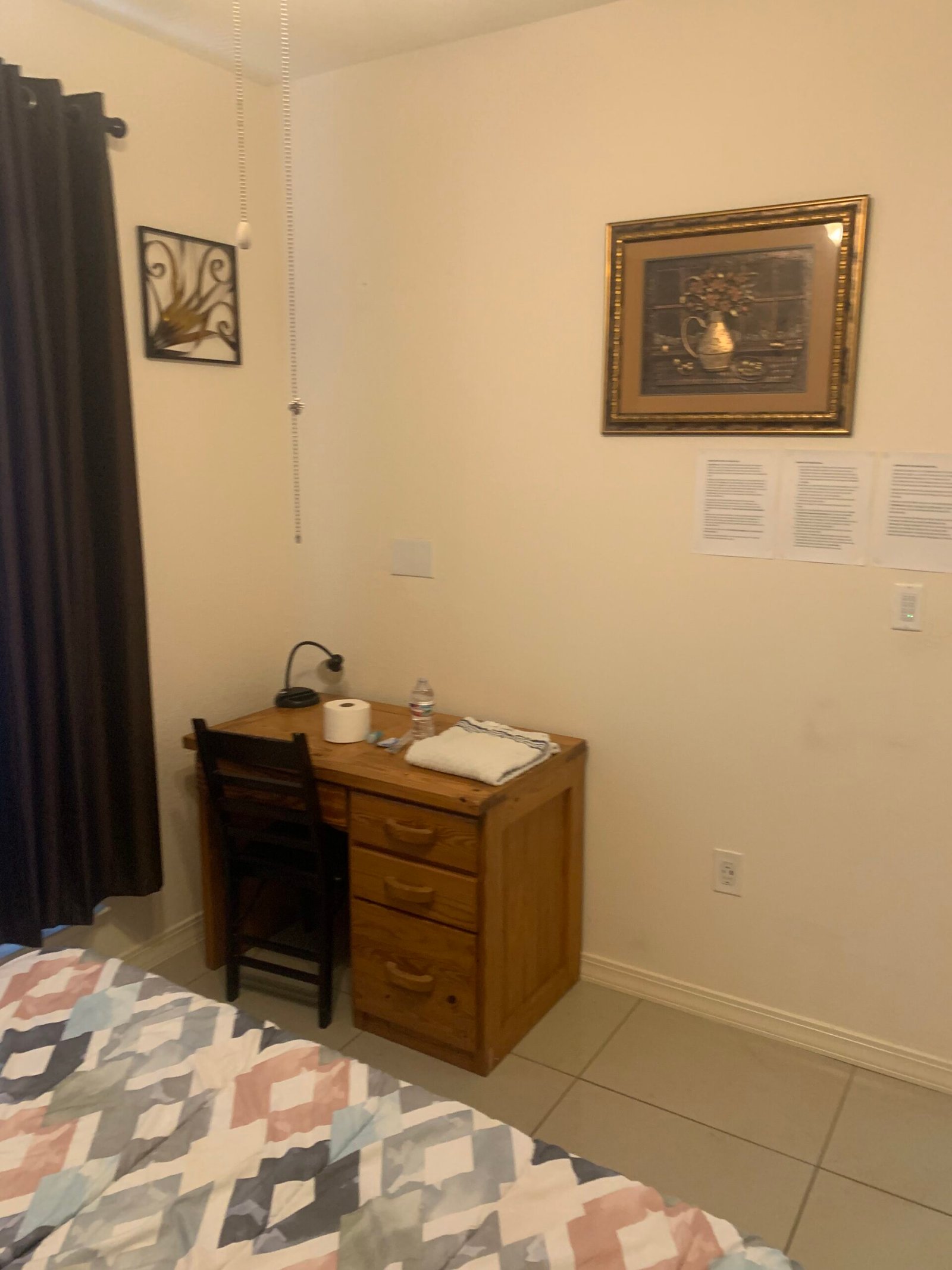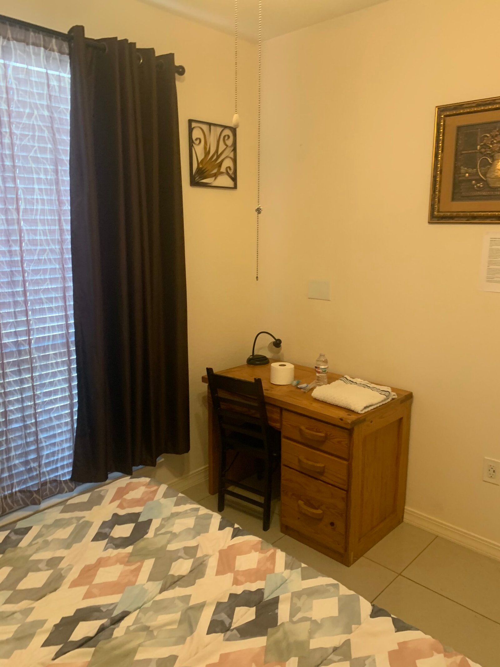 Across from the Mainland bus transit center. Close to Walmart and HEB, Gated community and great price for long term stays. You have your own bathroom for your self. Perfect for a single person stay. No guests allowed. Free street parking.