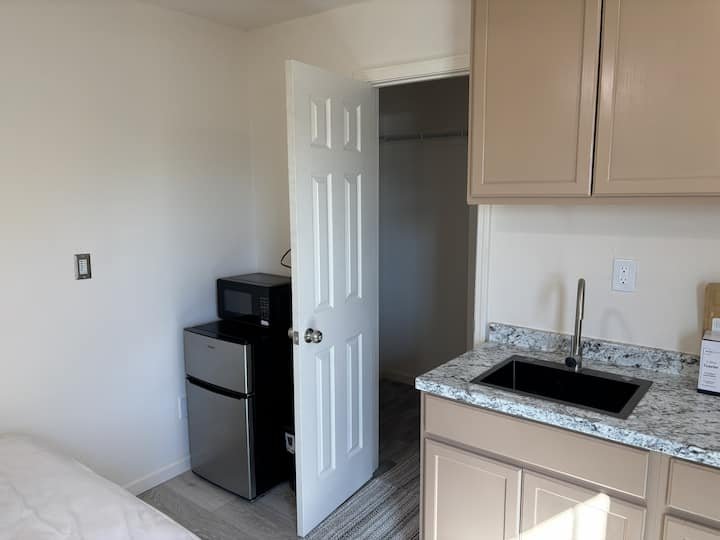 This is a studio outhouse suitable for short term or long term stays for a single person. NO FRILLS SERVICE. Simple peaceful and centrally located place. For your safety and comfort of other guests this place is not suitable if you have any medical condition or even undergoing online therapy. There are 4 studio outhouses here and each has a separate lock and fully equipped. Parking is free and a complimentary washer dryer is available. This is a property on a farmstead with 3 acres.