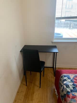 Monthly price for an apartment room with dedicated bathroom. You will be staying in one of the rooms available, so the linens and curtains shown in the picture are subject to change. Room is furnished with a single bed and a study desk/chair. Room size is small, about 10×10 sq. ft. Door has a keypad lock. Wifi is included in the price. Kitchen has a cooktop, microwave and refrigerator. Our low price comes with a absolutely non-refundable policy. We do not accept alterations.