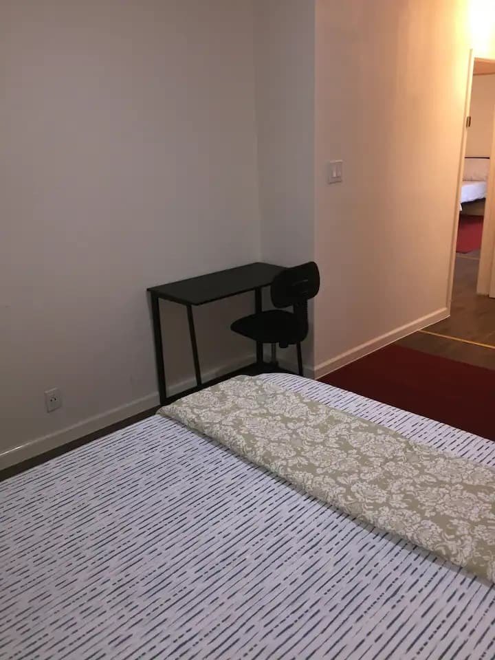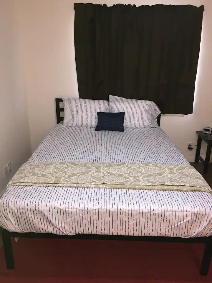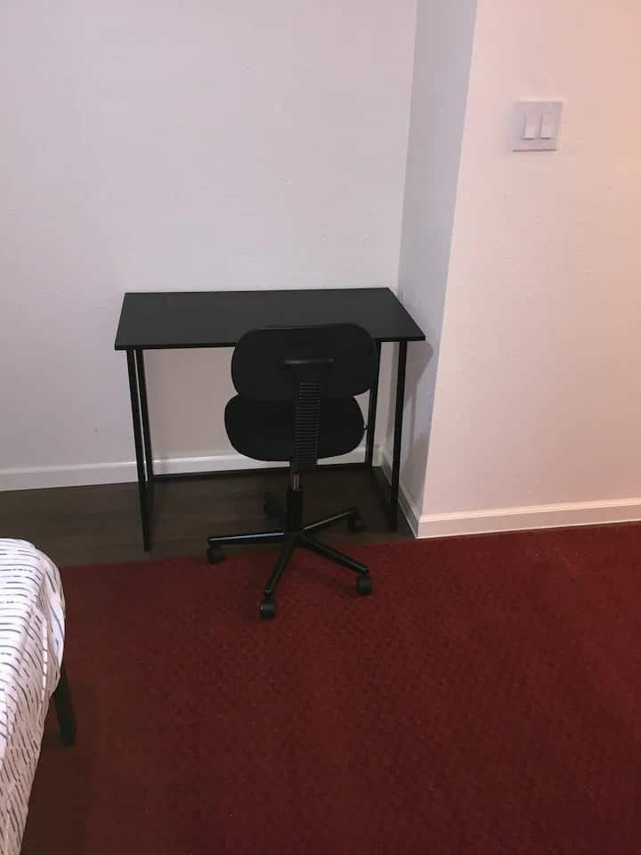 Monthly price for an apartment room with dedicated bathroom. You will be staying in one of the rooms available, so the linens and curtains shown in the picture are subject to change. Room is furnished with a single bed and a study desk/chair. Room size is small, about 10×10 sq. ft. Door has a keypad lock. Wifi is included in the price. Kitchen has a cooktop, microwave and refrigerator. Our low price comes with a absolutely non-refundable policy. We do not accept alterations.